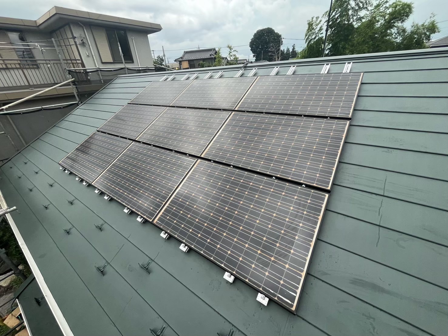 ■ 施工ポイント ・屋根葺き替えによる耐久性アップ ・防水性能の向上 ・太陽光パネル周りの納まり調整